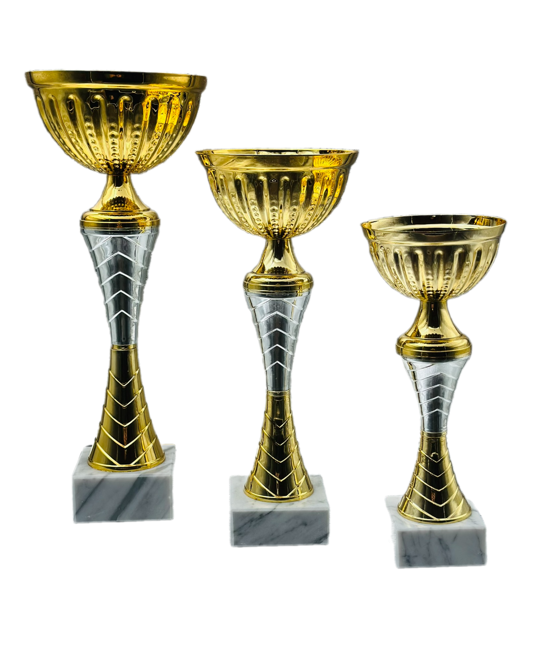 Κύπελλο απονομών αργυρό με λαβές για αθλητικές και άλλες εκδηλώσεις σε μαρμάρινη βάση.