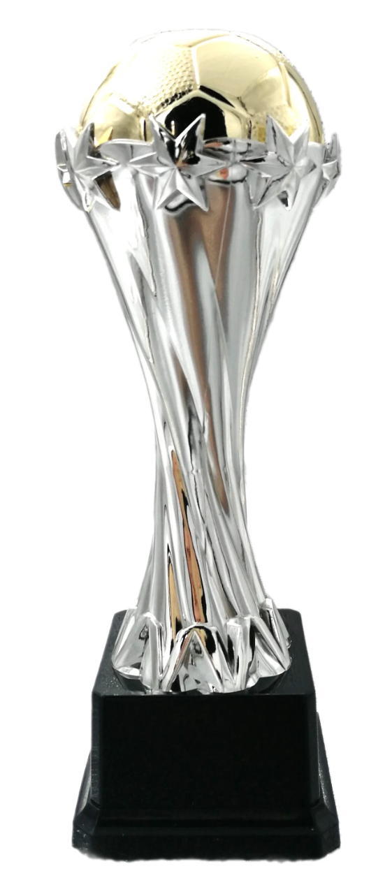 Τρόπαιο-έπαθλο ποδοσφαίρου ασημί-χρυσό ιδανικό , ιδανικό για βραβεύσεις σε τουρνουά ποδοσφαίρου και αθλητικές διοργανώσεις. Κατασκευασμένο από ανθεκτικό υλικό, τοποθετημένο σε μαύρη ξύλινη για σταθερότητα και κομψότητα.